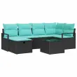 vidaXL Kavčna garnitura z blazino 7 pcs Črna in turkizna poli ratan