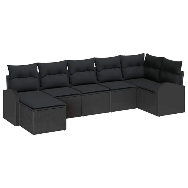 vidaXL Kavčna garnitura z blazino 7 pcs Črna poli ratan