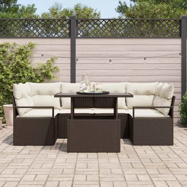 vidaXL Kavčna garnitura z blazino 7 pcs Rjava poli ratan