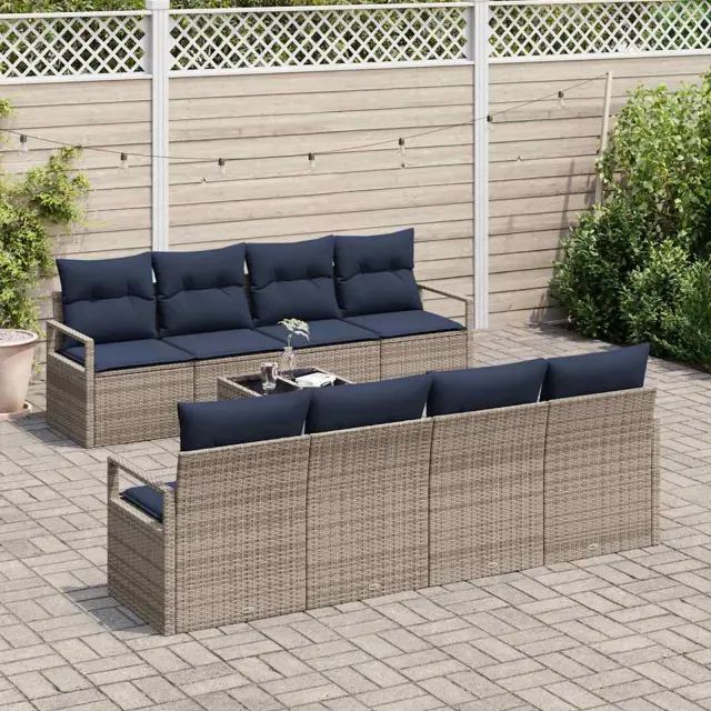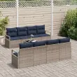 vidaXL Kavčna garnitura z blazino 7 pcs Siva in modra poli ratan
