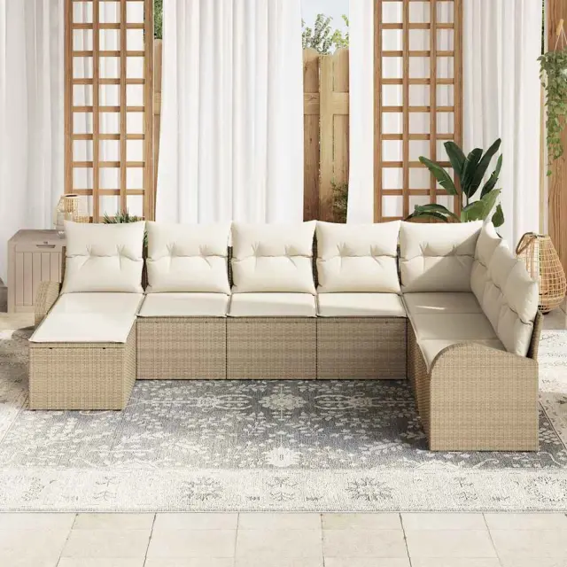 vidaXL Kavčna garnitura z blazino 8 pcs Bež in bela poli ratan