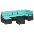 vidaXL Kavčna garnitura z blazino 8 pcs Črna in turkizna poli ratan