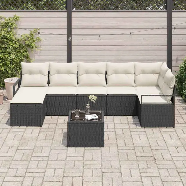 vidaXL Kavčna garnitura z blazino 8 pcs Črna poli ratan