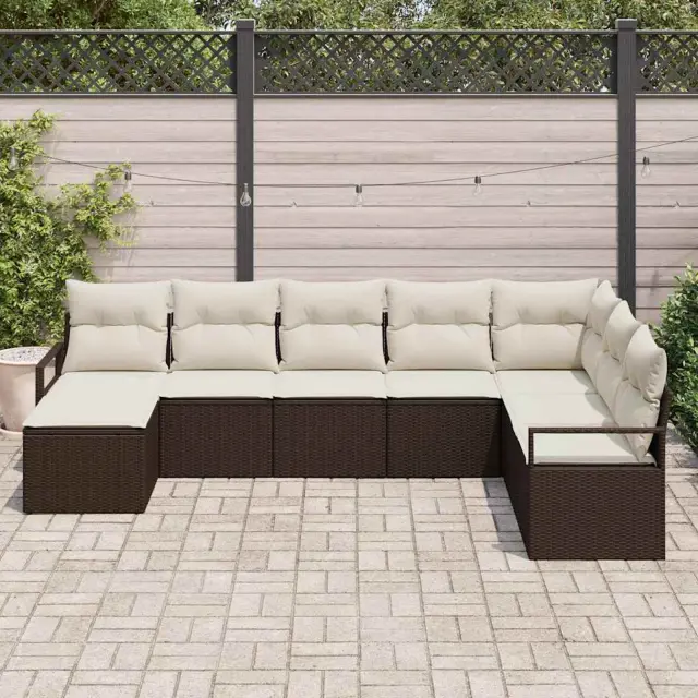 vidaXL Kavčna garnitura z blazino 8 pcs Rjava poli ratan