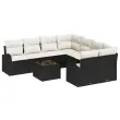 vidaXL Kavčna garnitura z blazino 9 pcs Črna in krem poli ratan