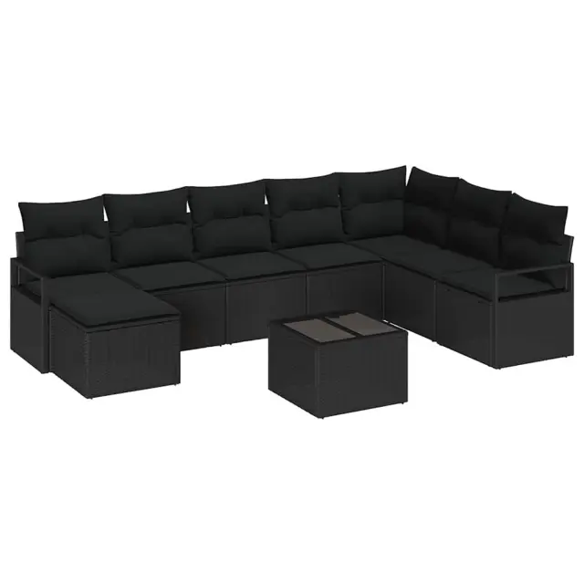 vidaXL Kavčna garnitura z blazino 9 pcs Črna poli ratan
