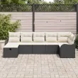 vidaXL Kavčna garnitura z blazino Črna in krem poli ratan