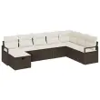 vidaXL Kavčna garnitura z blazino Rjava in krem poli ratan