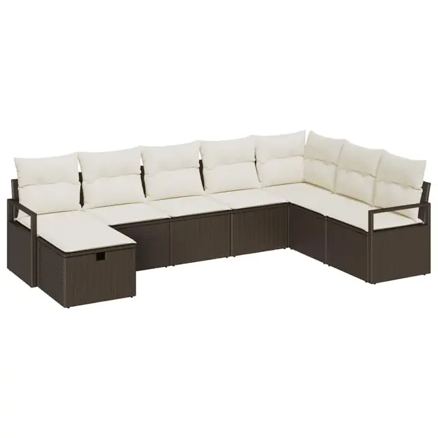 • Materiali: Ta vrtnik kavč set je narejen iz kakovostnega poli ratana za moderen in eleganten videz. Ta material zagotavlja dolgo obstojnost in ohranja videz tudi pri različnem vremenu. Prašno lakiran jekleni okvir daje močno strukturo, kar dodaja sofisticiranost vsakemu zunanjemu prostoru.