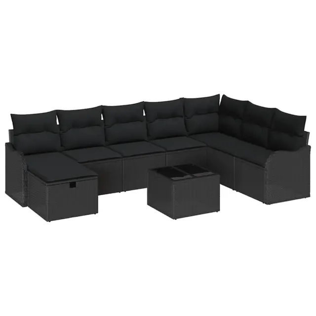 vidaXL Kavčna garnitura z blazino s shranjevanjem Črna poli ratan