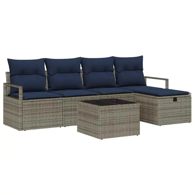 vidaXL Kavčna garnitura z blazino Siva in mornarsko modra poli ratan