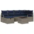 vidaXL Kavčna garnitura z blazino Siva in mornarsko modra poli ratan