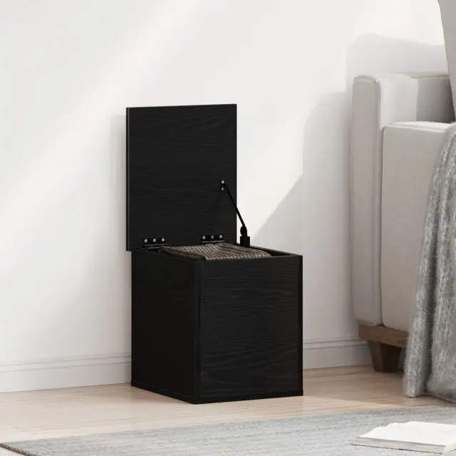 Ta shrambna škatla Črni hrast je odličen mix praktičnosti in stila, kar jo naredi za fantastičen dodatek v vsakem dnevnem prostoru, spalnici ali hodniku. Narejena iz kvalitetnega inženirskega lesa, njena kubična zasnova se popolnoma ujema s tvojo dekoracijo in ponuja veliko prostora za tvoje stvari.