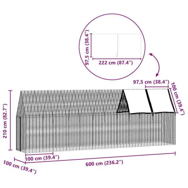 vidaXL Kletka za piščance 2 pcs srebrna 600 x 100 x 210 cm