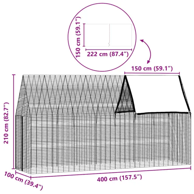 vidaXL Kletka za zajce srebrna 400 x 100 x 210 cm Cinkana jeklena