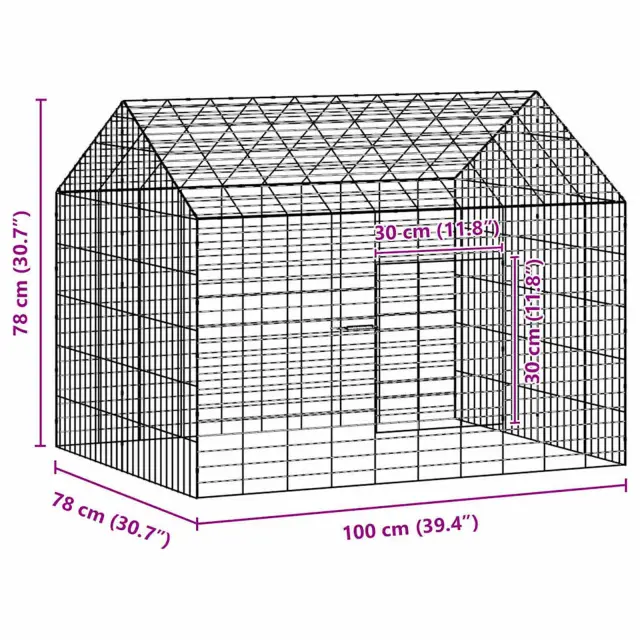 vidaXL Kletka za zajce srebrna 400 x 78 x 78 cm Cinkana jeklena