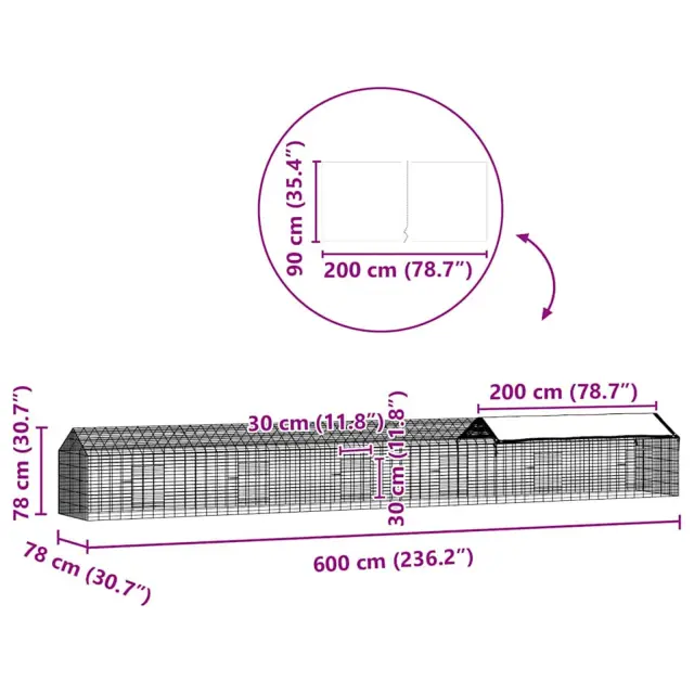 vidaXL Kletka za zajce srebrna 400 x 78 x 78 cm Cinkana jeklena