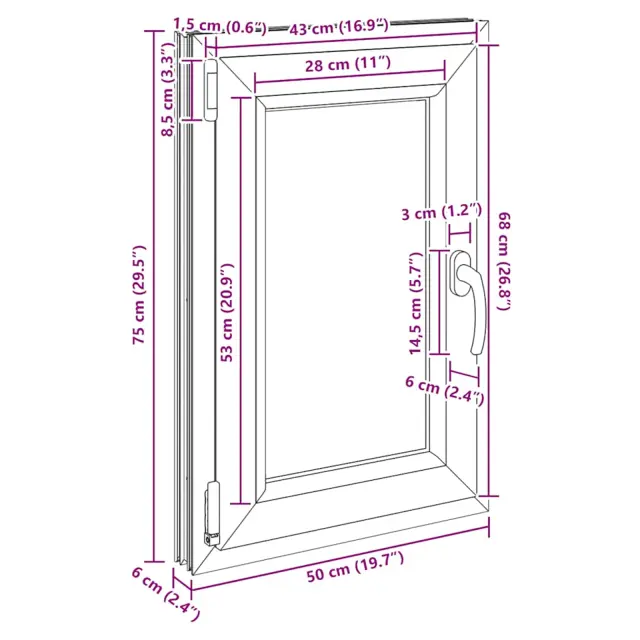 vidaXL Kletno okno "RISOR" 50x75 cm vrtljivo-nagibno DIN levo antracitno