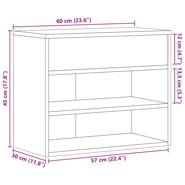 vidaXL Klop za čevlje betonsko siva 60x30x45 cm iverna plošča