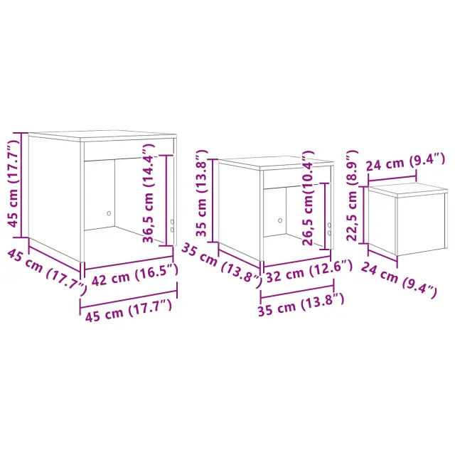 Ta set miz za kavo ponuja sodoben in privlačen videz, idealen za tiste, ki ljubijo minimalistične kose pohištva z dotikom elegance. Namenjene so za notranje prostore, zlasti dnevne sobe. Mize se lepo prilegajo različnim stilom, od uporabnih površin do dekorativnih elementov. Vsaka miza ima kompaktne dimenzije, kar jih naredi odlične za manjša stanovanja ali kot dodatek večjim prostorskim aranžmajem. Predstavljajte si, kako lepo bi bile ob vašem najljubšem sedežu, kjer držijo knjige, okrasne predmete ali služijo kot prostor za pijačo med druženjem.