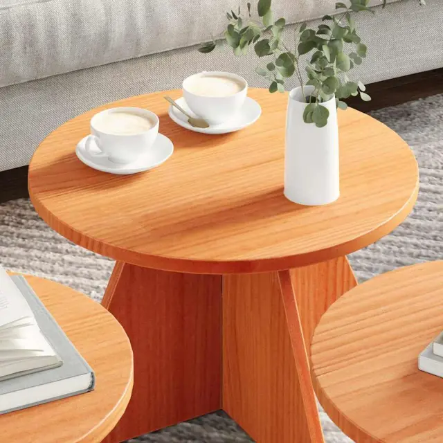 vidaXL Klubska miza 3 pcs Voščeno rjava 49 x 49 x 30 cm Trdna borovina