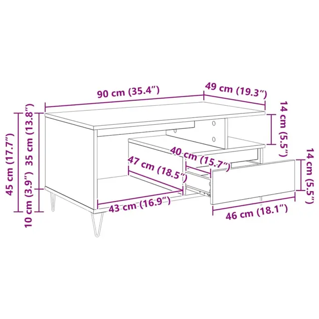 vidaXL Klubska miza Črna Orehovina 90 x 49 x 45 cm Konstruiran les