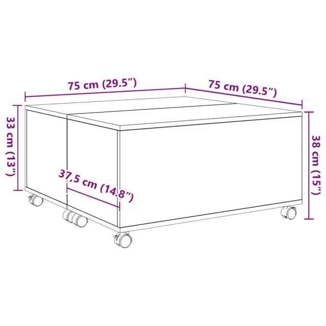 vidaXL Klubska miza Črni hrast 75 x 75 x 38 cm Konstruiran les