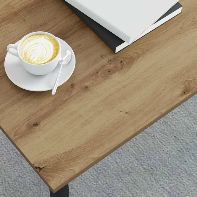 • Trdna zgradba: Robustna mizica za kavo je narejena iz inženirskega lesa in kovine, kar zagotavlja močno osnovo za vse vaše stvari. Ti materiali nudijo trajno podporo in stabilnost, kar je idealno za vsakodnevno uporabo. Zasnovana je tako, da zdrži dolga leta in se ne bo obrabila kljub vsakodnevnim interakcijam.