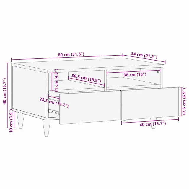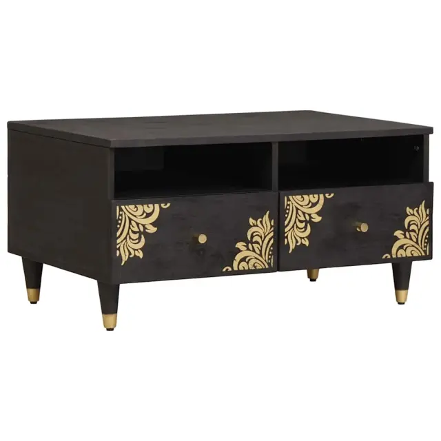 vidaXL Klubska miza s predalom Črna 80 x 54 x 40 cm Masiven les manga