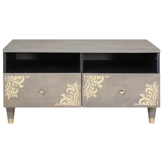 vidaXL Klubska miza s predalom Siva 80 x 54 x 40 cm trden mangov les