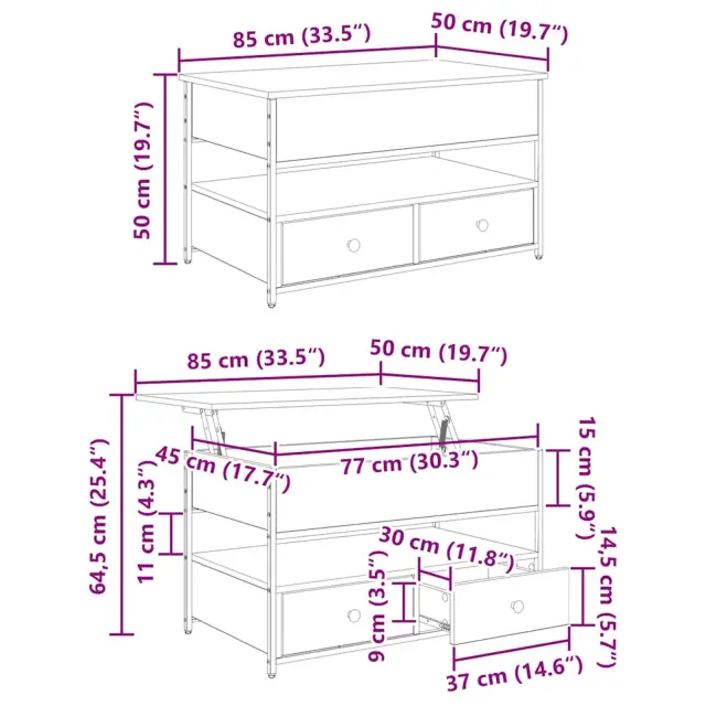 vidaXL Klubska miza Umetni hrast 85 x 50 x 50 cm Konstruiran les
