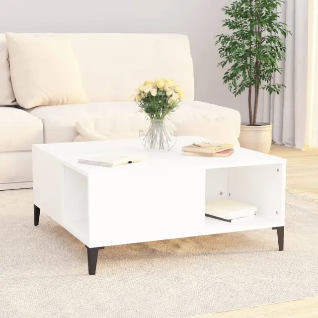 vidaXL Klubska mizica bela 80x80x36,5 cm inženirski les