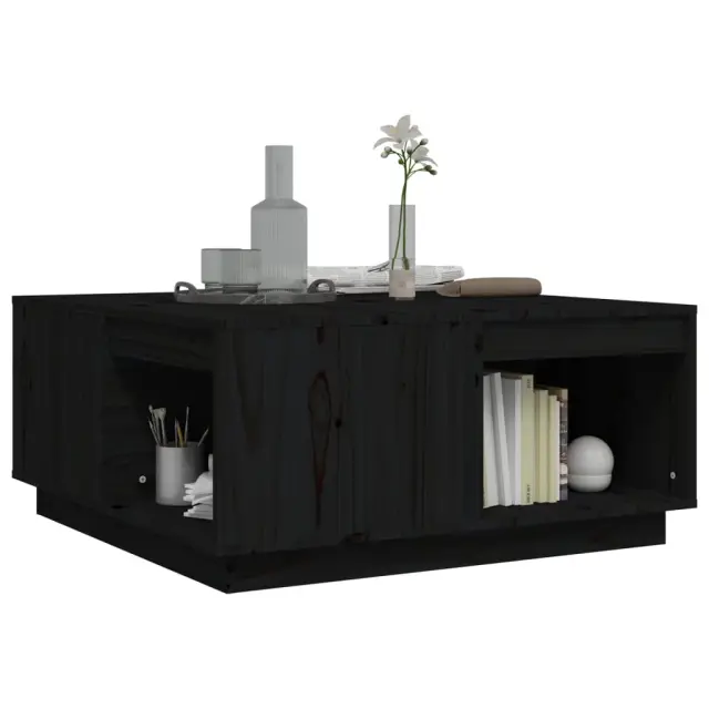 vidaXL Klubska mizica črna 80x81x36,5 cm trdna borovina