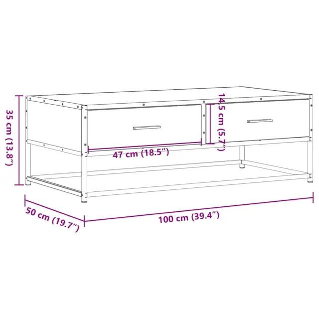 vidaXL Klubska mizica črna 100x50x35 cm inženirski les in kovina