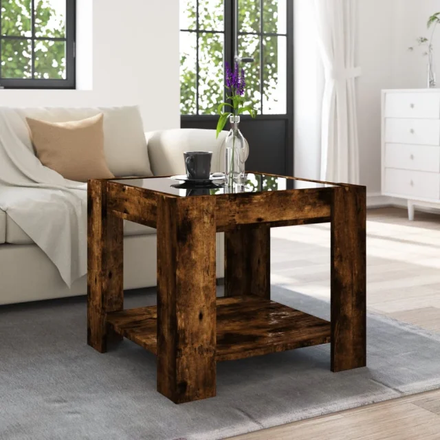 vidaXL Klubska mizica LED dimljeni hrast 53x53x45 cm inženirski les