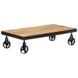 vidaXL Klubska mizica s kolesi iz trdnega mangovega lesa 100x55x26 cm