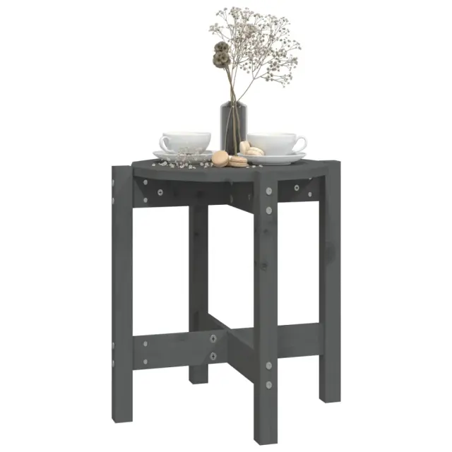 vidaXL Klubska mizica siva Ø 42,5x45 cm trdna borovina