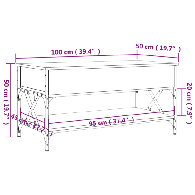 vidaXL Klubska mizica siva sonoma 100x50x50 cm inž. les in kovina