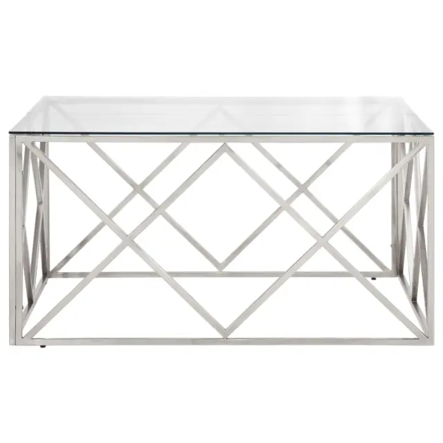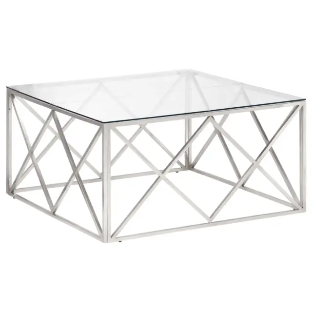 vidaXL Klubska mizica srebrna nerjaveče jeklo in kaljeno steklo