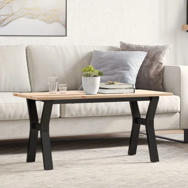vidaXL Klubska mizica Y okvir 100x50x45 cm trdna borovina jeklo