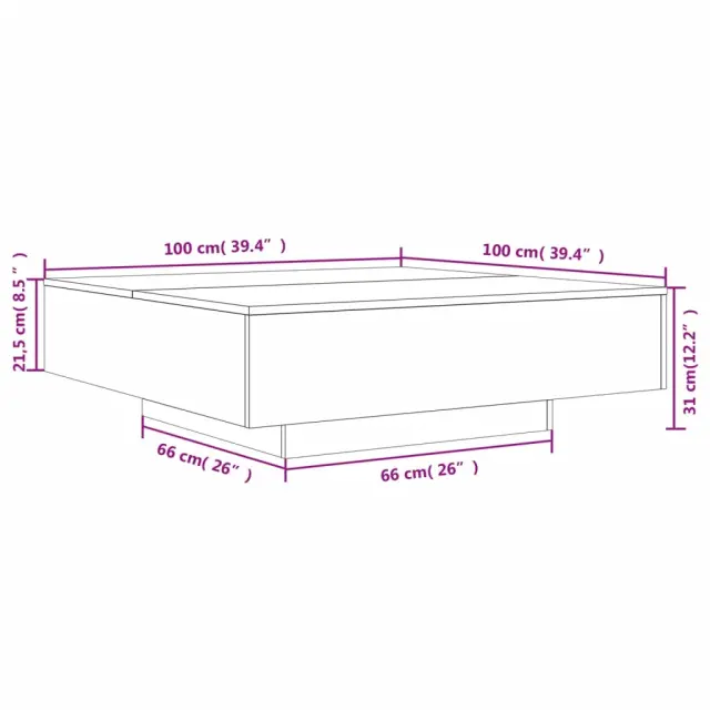 vidaXL Klubska mizica z LED lučmi bela 100x100x31 cm