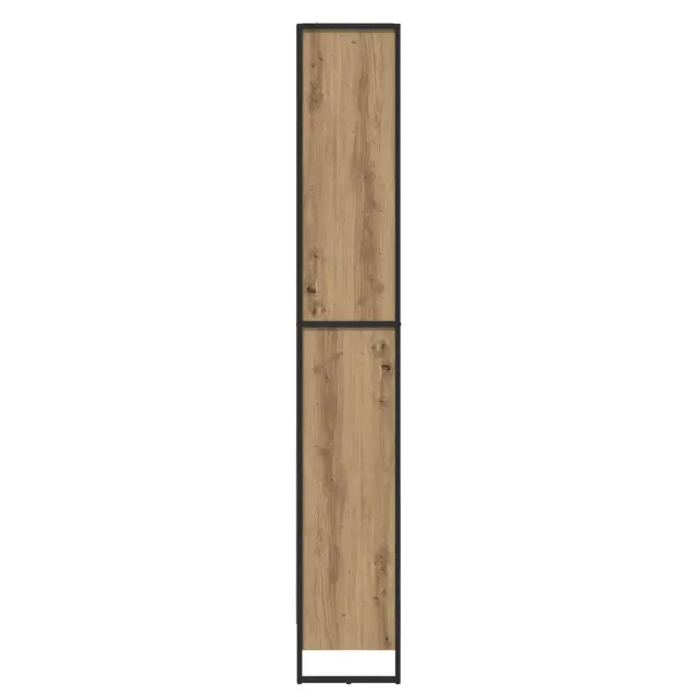 • Jekleni elementi: S trdnimi jeklenimi nogami omara omogoča stabilnost in trdnost, tudi ko je polna knjig ali dekorativnih predmetov. Ta izbira dizajna ne le izboljša strukturalno integriteto, temveč dodaja tudi kanček industrijskega sloga, ki se odlično ujema s sodobnimi notranjimi temami.