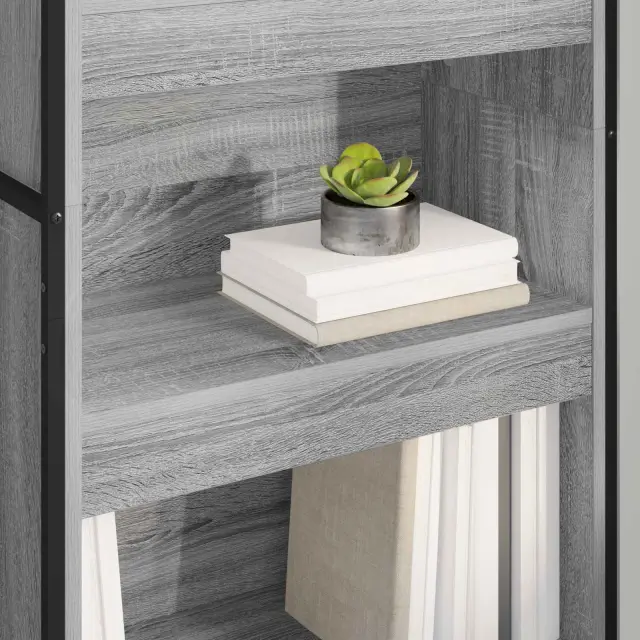 Ta industrijska knjižna omara je super kos za moderne dnevne sobe, saj ponuja stil in funkcionalnost. S pravokotno obliko in inženirskim lesom je prava mešanica inovacij in elegance. Idealna za ljubitelje notranjega oblikovanja, ta knjižna omara je umetniška kombinacija materialov, ki lahko postane središče pozornosti v vsakem prostoru ter nudi prosto mesto za vse vaše knjige in dekoracije.
