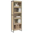 Ta industrijska knjižna omara je super kos za moderne dnevne sobe, saj ponuja stil in funkcionalnost. S pravokotno obliko in inženirskim lesom je prava mešanica inovacij in elegance. Idealna za ljubitelje notranjega oblikovanja, ta knjižna omara je umetniška kombinacija materialov, ki lahko postane središče pozornosti v vsakem prostoru ter nudi prosto mesto za vse vaše knjige in dekoracije.