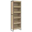 • Jekleni elementi: S trdnimi jeklenimi nogami omara omogoča stabilnost in trdnost, tudi ko je polna knjig ali dekorativnih predmetov. Ta izbira dizajna ne le izboljša strukturalno integriteto, temveč dodaja tudi kanček industrijskega sloga, ki se odlično ujema s sodobnimi notranjimi temami.