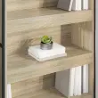 • Jekleni elementi: S trdnimi jeklenimi nogami omara omogoča stabilnost in trdnost, tudi ko je polna knjig ali dekorativnih predmetov. Ta izbira dizajna ne le izboljša strukturalno integriteto, temveč dodaja tudi kanček industrijskega sloga, ki se odlično ujema s sodobnimi notranjimi temami.