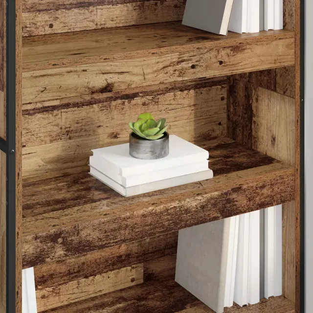 Ta industrijska knjižna omara je super kos za moderne dnevne sobe, saj ponuja stil in funkcionalnost. S pravokotno obliko in inženirskim lesom je prava mešanica inovacij in elegance. Idealna za ljubitelje notranjega oblikovanja, ta knjižna omara je umetniška kombinacija materialov, ki lahko postane središče pozornosti v vsakem prostoru ter nudi prosto mesto za vse vaše knjige in dekoracije.