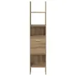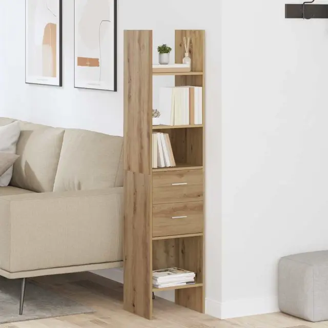 Materiali: Ta knjižna omara je izdelana iz inženirskega lesa, kar zagotavlja eleganten, a vzdržljiv videz. Oblikovana za prilagajanje sodobnim in tradicionalnim nastavitvam, material zagotavlja stabilnost in dolgotrajnost, odporen na upogibanje in obrabo sčasoma. To jo naredi za dragocen kos pohištva v domovih, ki dajejo prednost tako slogu kot funkcionalnosti.,Vključene komponente: Dostavljena kot enota, ta omara vključuje več polic, ki so popolne za shranjevanje vsega, od knjig do dekorativnih predmetov. Njena premišljena zasnova zagotavlja, da je vsaka polica popolnoma razporejena, kar ponuja prilagodljivost shranjevanja predmetov različnih višin in velikosti, kar elegantno prilagaja vašim osebnim potrebam.,Lastnosti / Funkcija / Oblika: Ta omara, ki se lahko pohvali z obilo prostora za shranjevanje, je zasnovana, da zagotovi znatno količino prostora, ne da bi žrtvovala stil. Njena povišana struktura pomeni, da lahko ustvarjalno optimizirate stensko površino, kar je idealna rešitev za nered in ustvarjanje minimalistične, a dekorativne razstave. To dopolnjuje njena robustna gradnja, ki zagotavlja trajno oporo za več predmetov.,Priporočena uporaba: Idealna za dnevne sobe, spalnice ali celo domače pisarne, zasnova omare je preprosta, a funkcionalna ter dopolnjuje vrsto stilov, od ultra moderne do zadržane elegance. Popolna je za shranjevanje tako dekorativnih predmetov kot praktičnih nujnosti, kar vam daje vsestransko rešitev za shranjevanje v vsakem prostoru.,Vzdrževanje in skrb: Da bo vaša knjižna omara videti brezhibno, jo je pomembno pritrditi na steno kot varnostni ukrep proti prevračanju. Redno brisanje prahu zagotavlja, da površine ostanejo čiste in brez drobcev, kar ohranja njen polished videz in strukturno integriteto skozi čas z minimalnim naporom.