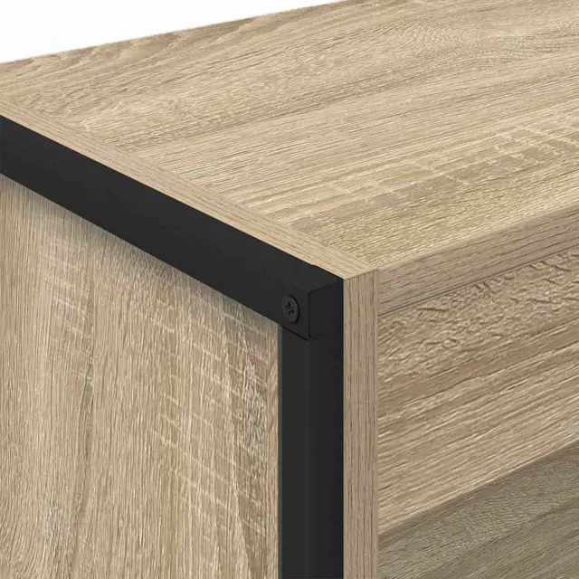 • Inženirski les: Omara, narejena iz visoko kakovostnega inženirskega lesa, ponuja dolgotrajno uporabnost in lep videz. Material zagotavlja trdo in lahko strukturo, ki je hkrati praktična in estetsko privlačna. Sledi modernim oblikovalskim smernicam ter omogoča gladko površino, ki se ujema z različnimi stili dekoracije.