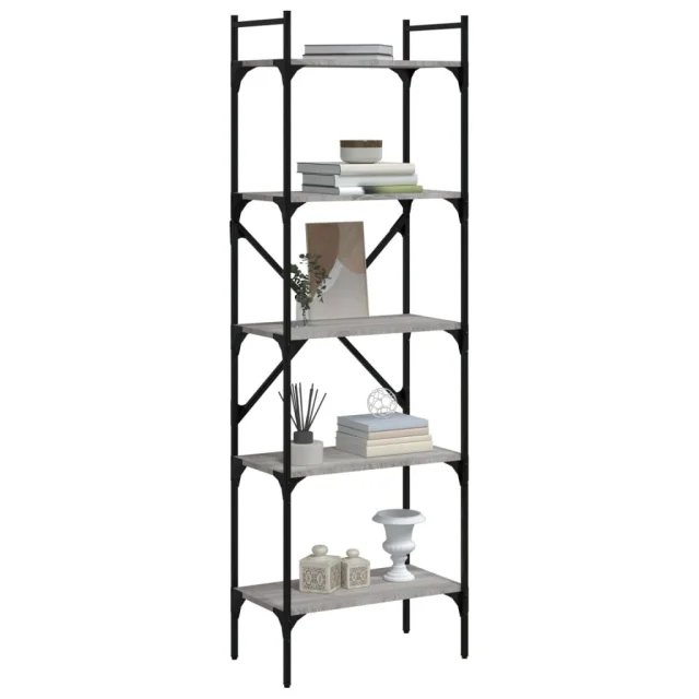 vidaXL Knjižna omara 5-nadstropna siva sonoma 56x31,5x174 cm inž. les